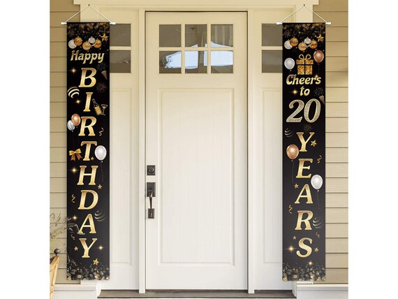 Happy Birthday Cheers To 20 Years Black Gold Yard Sign Door Etsy